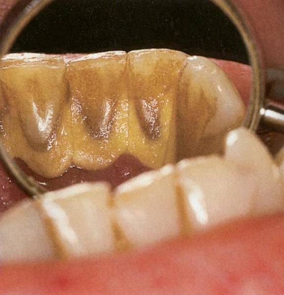 Dans le cas de tartre comme le tartre résulte en l'accumulation de plaque dentaire calcifiée par les minéraux de la salive et.